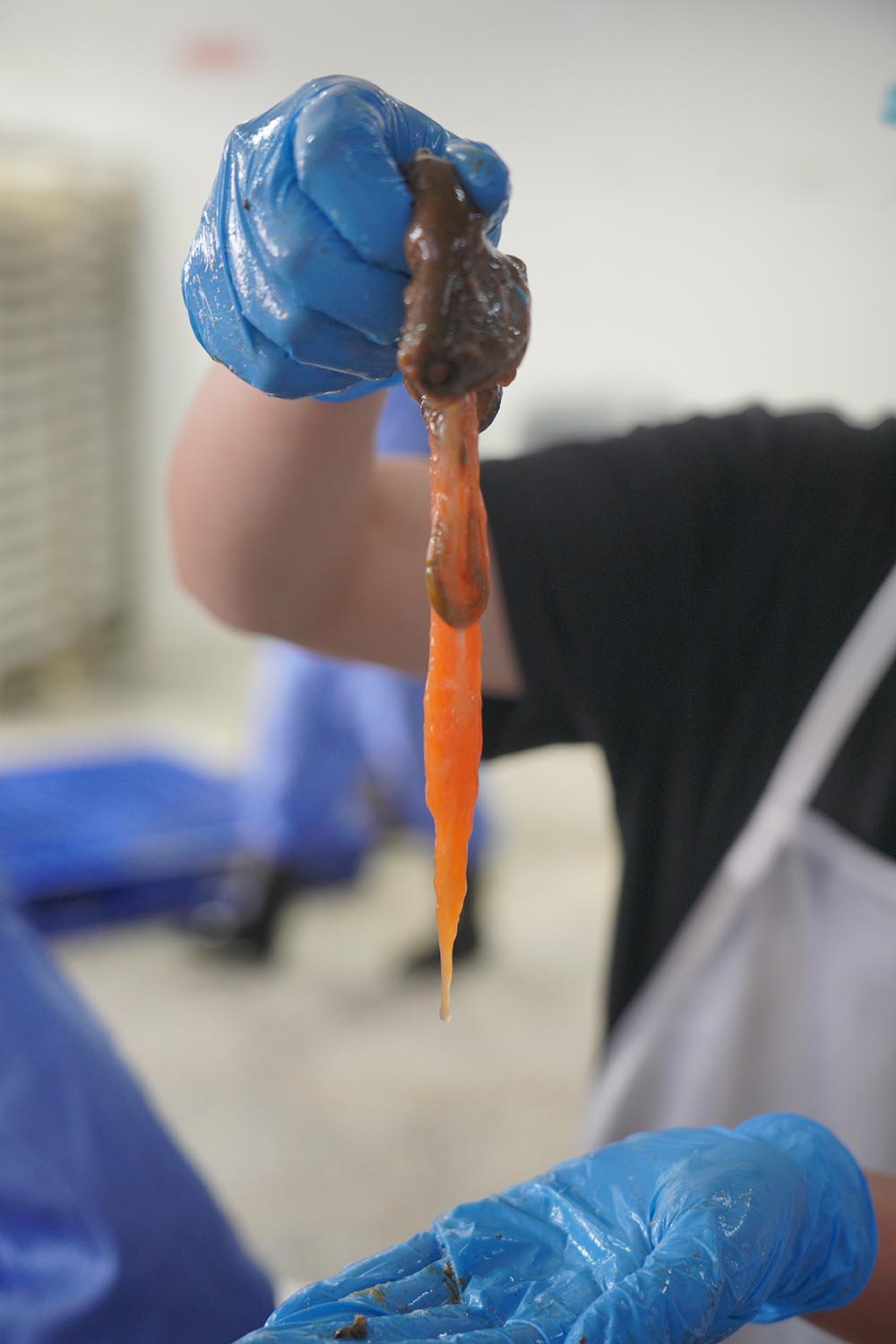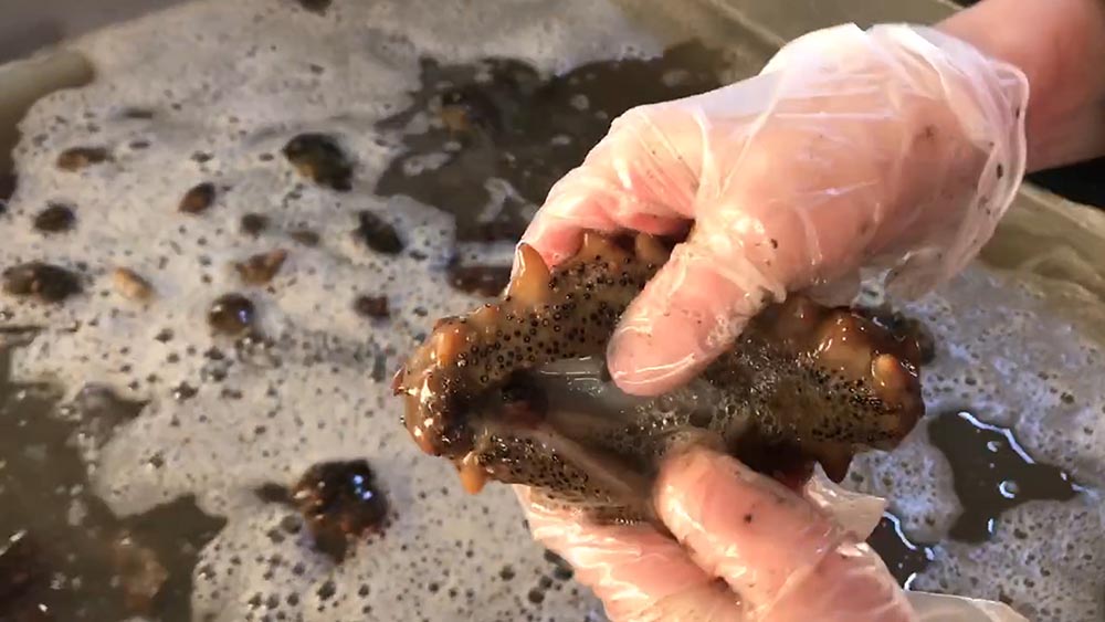将鲜活海参进行去内脏处理,历经三至五次清洗,去除残留的泥沙杂质。