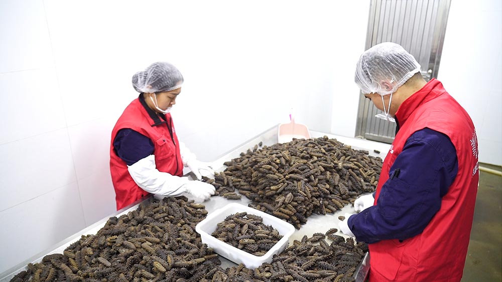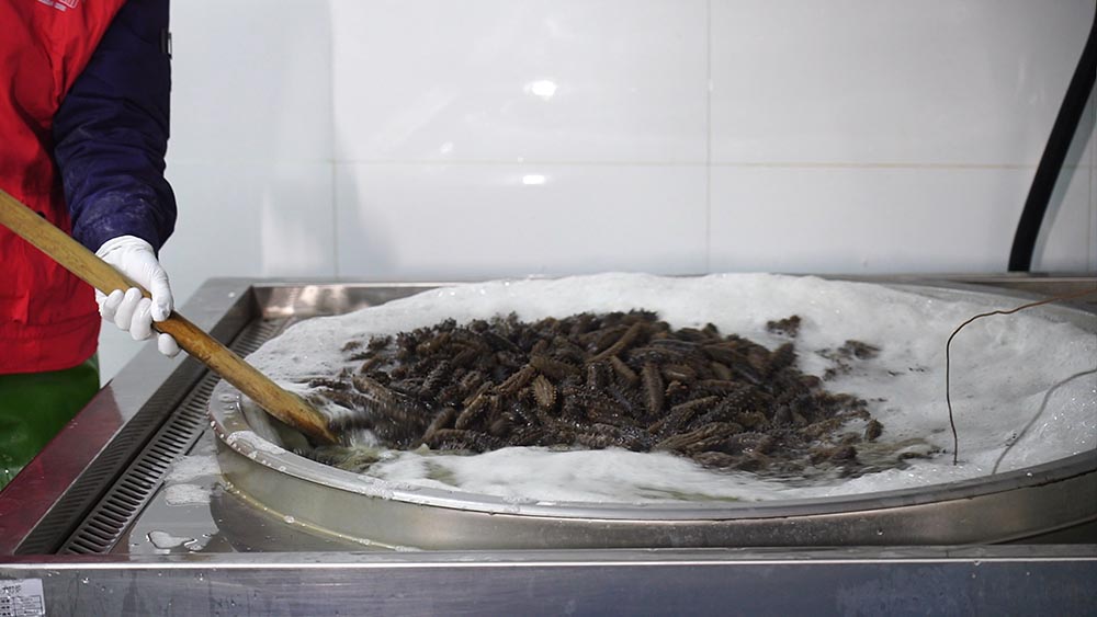 捕捞个大饱满的鲜活海参,捕捞后6小时内送到工厂进行加工处理。