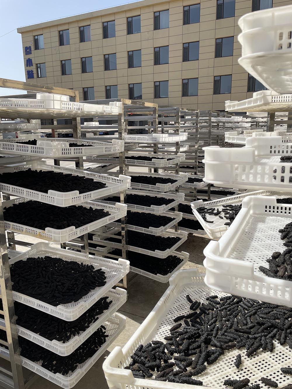 把每一头海参均匀铺开,天然晾晒30天左右,获得干参成品。